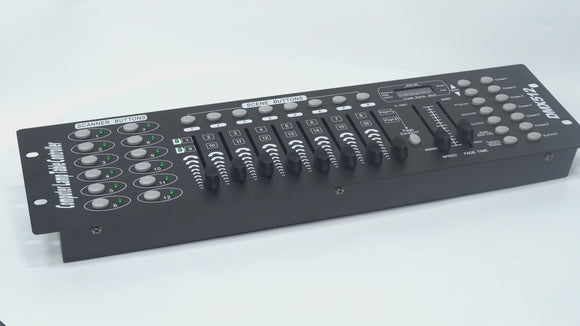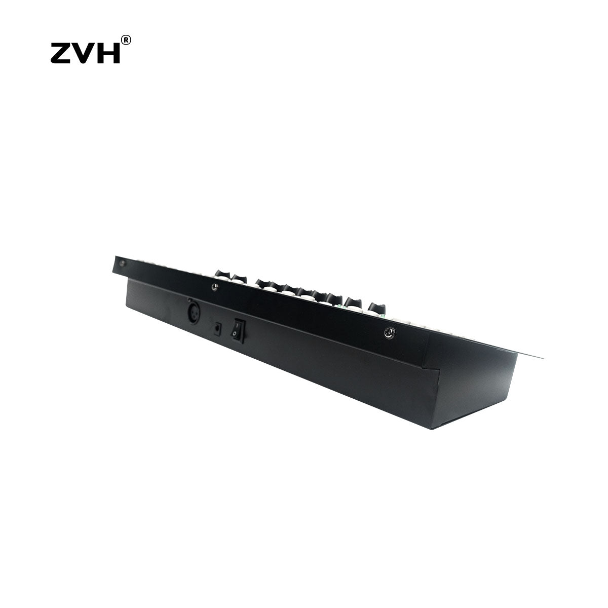 The ZVH DMX 512 controller offers 192 channel groups, enabling control of up to 12 intelligent lights with 16 channels each. It supports 30 banks of 8 programmable scenes and 6 programmable chases with 240 scenes, designed for seamless management of multiple light effects. The console features 8 real-time manual control sliders and an auto mode regulated by speed and fade time sliders. Equipped with a 3-pin cable, it supports various fixtures like fog machines, par lights, strobes, and more. With intuitive sections including fixture selection, scene switches, channel faders, LED display, and multi-voltage compatibility, it’s ideal for stage performances, DJ events, weddings, and other gatherings requiring precise lighting control.