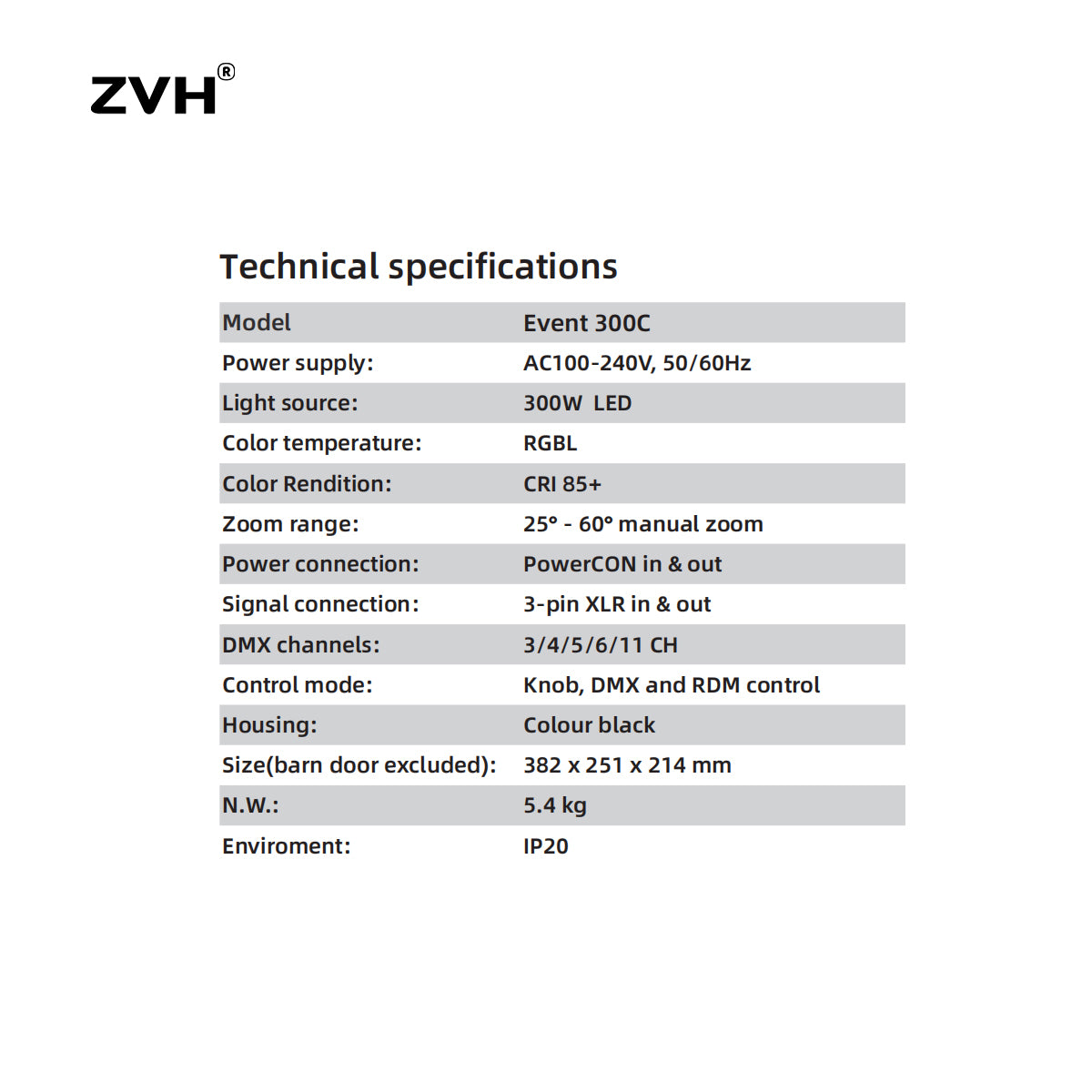 Event 300C — это светодиод RGBL, предназначенный для замены традиционных ламповых прожекторов, отличающийся низким энергопотреблением и высокой яркостью. Диапазон зума 25°-60°.