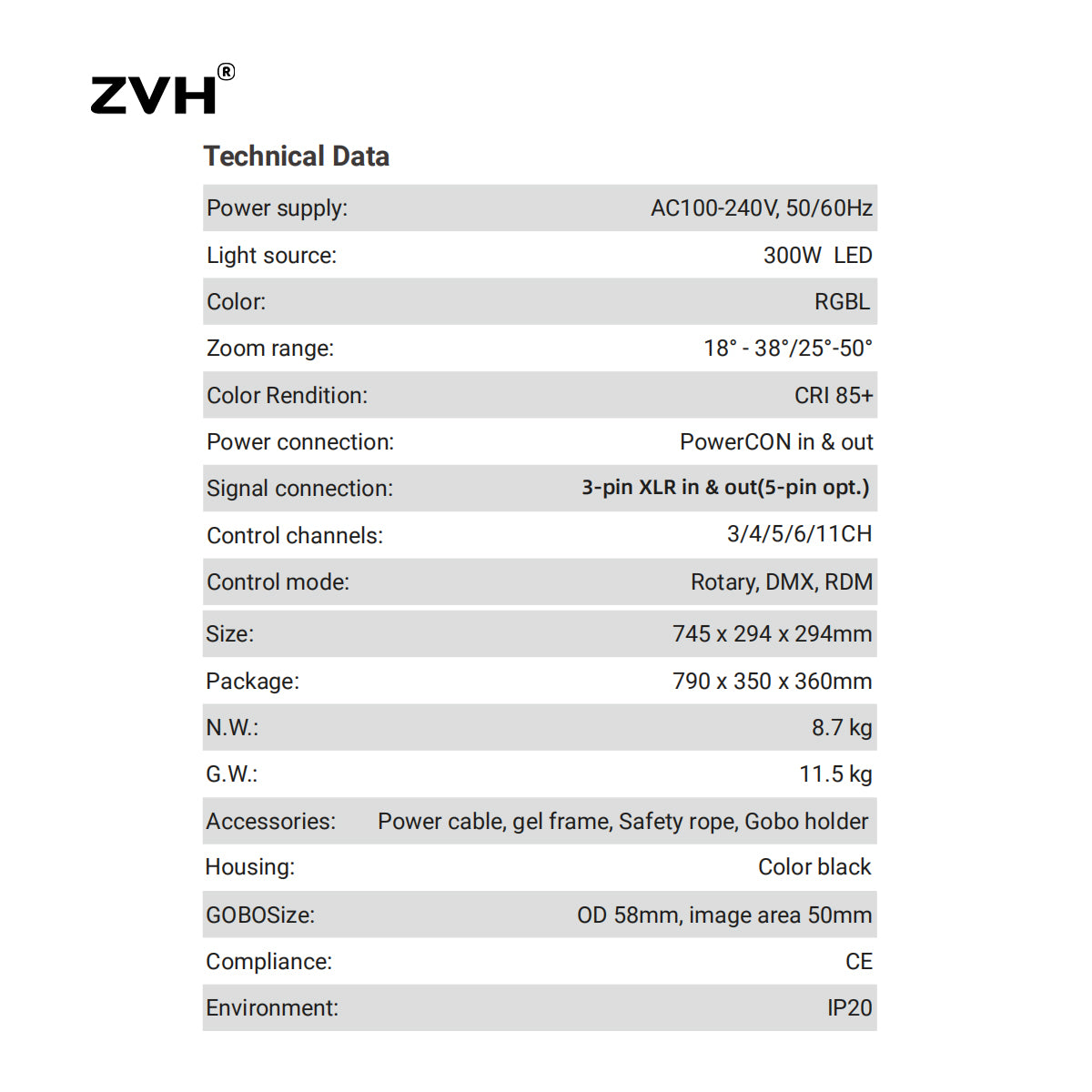 EVENT 300C Profile — профильный светильник со светодиодами RGBL. Хорошая замена вольфрамовому источнику света. Зум-объектив с углом обзора 18 ° –38° и 25°–50°.