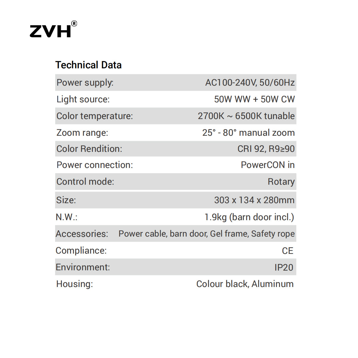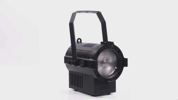 F 50 T — компактный светодиодный светильник с линзой Френеля мощностью 50 Вт (WW) и 50 Вт (CW) с возможностью регулировки. Зум 25°–80°, индекс цветопередачи 92, 90 ≥ R9, поворотный регулятор яркости . Он обеспечивает равномерное, мягкое, ровное световое поле. В комплект поставки входят шторки для регулировки формы света.